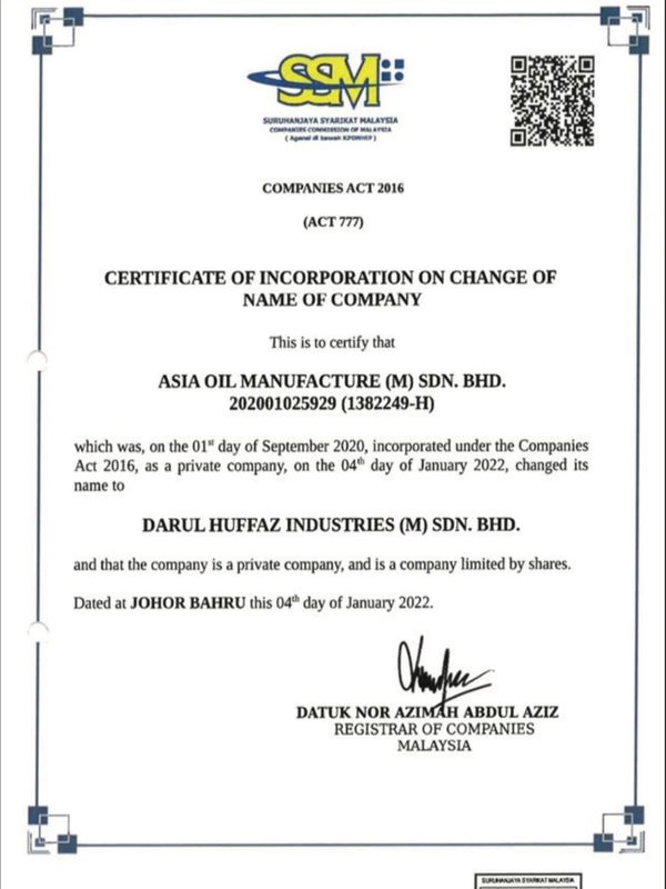 is a Bumiputera company that runs a COOKING OIL PACKAGING ,PURCHASES, STORAGE,